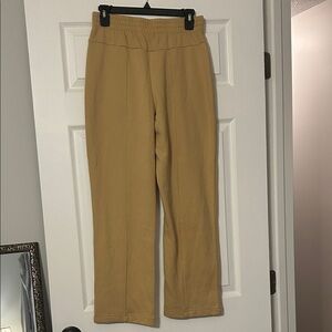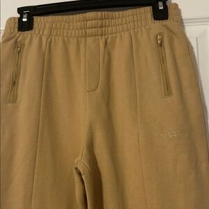 Chic straight leg pants by Ragdoll LA. Soft camel color with elastic waistband, zipper pockets and embroidered logo in the front. Materials: 38%cotton/39%polyester/23% Modal. Luxuriously soft and perfect for casual wear.