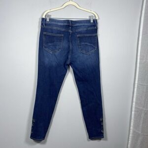 Driftwood Jackie High Rise Jeans Women's Sz 31 X 28 Blue Embroidered Flowers Boho Floral Dark Wash