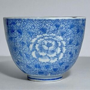Vintage JAPANESE TEACUP / Blue IMARI TRANSFERWARE / Small Chip / 3 Inches Wide