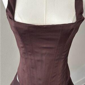 Chic dark satin brown corset top Sleek and stylish design. Perfect for a night out.l only use once
