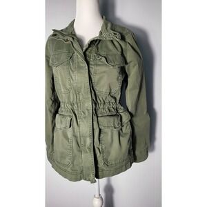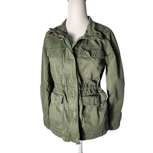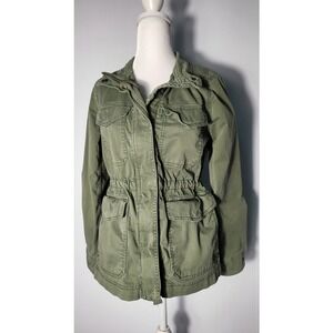 Gap Y2k Army Green Utility Jacket Military Anorak Drawstring Waist Lightweight