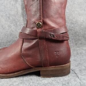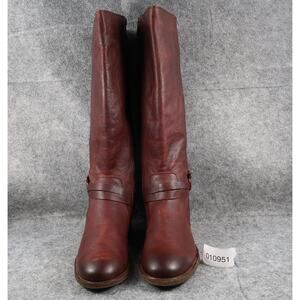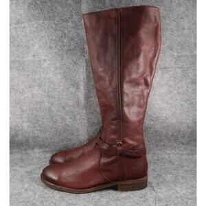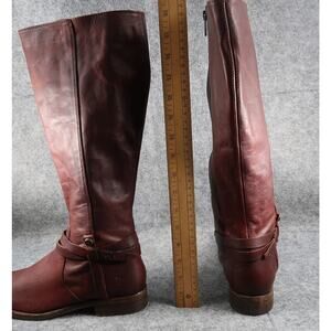 Used Frye Boots Womens 7.5 Tall Melissa Belted Leather Brown Riding Knee High Zip