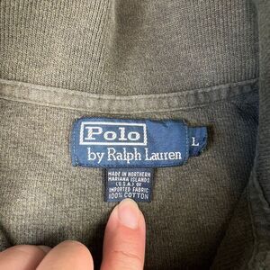 Polo Ralph Lauren Mens 1/4 Zip Pullover Sweater Size Large Green Orange Pony