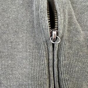 - No stains. Zipper is functioning but missing the zipper pull. Inside of cuffs is worn - see pictures