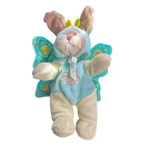 This collectible plush features a charming bunny in a butterfly outfit with embroidered details. Soft materials and adorable design make it a delightful addition.