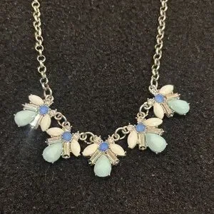 This elegant necklace features a stunning combination of silver and blue tones, perfect for adding a touch of sophistication to any outfit. Its intricate design is both timeless and versatile.
