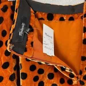 Madewell Skirt WMNS Orange Black SZ 2 Velour Polka Dot Mini Skirt Retro Modern