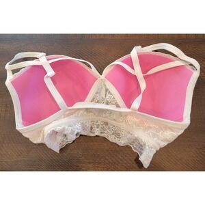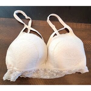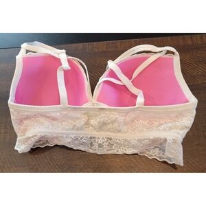 Victoria's Secret PINK Lightly Lined Bra Ivory Off White Lace Peek A Boo Medium