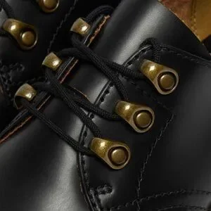 Upgrade your wardrobe with a smooth leather derby featuring Doc Marten's signature AirWair cushioning, yellow welt stitching and a lugged platform sole.