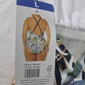 HURLEY One Piece CAYMAN PALMS Green adjustable swimsuit LARGE NEW with tags
