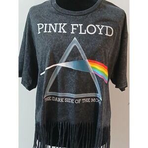 Pink Floyd The Dark Side of the Moon Graphic T Shirt Fringe Hem Women's L