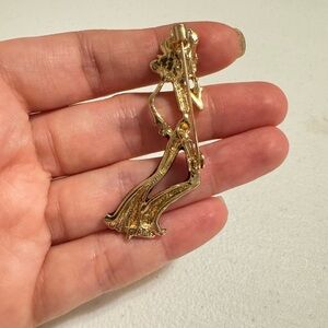 Add a touch of elegance to your outfit with this stunning red and gold fashion brooch. Perfect for any occasion.
