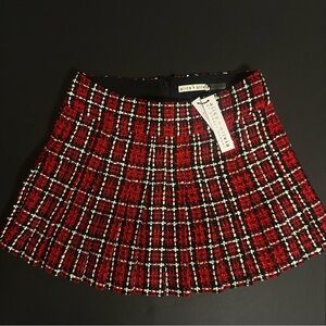 Stylish mini skirt by Alice + Olivia. Features a striking red and black checkered design. Ideal for trendy occasions.