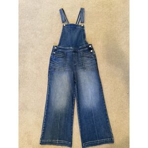$168 NWT Evereve Ever Denim Overall Bluespark Size 32 Wide Leg Cropped Overalls