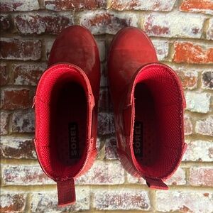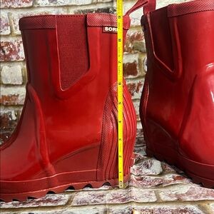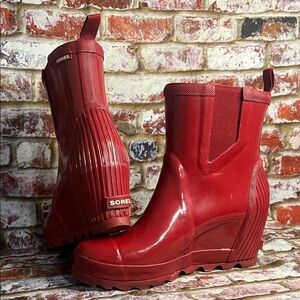 Sorel Joan Rain Wedge Chelsea boots in red gloss
