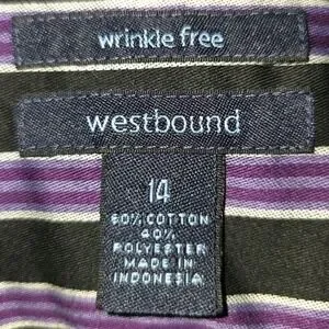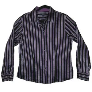 Westbound Wrinkle-Free Pinstripe Button Shirt Woman's Size 14 Shirt Purple Black