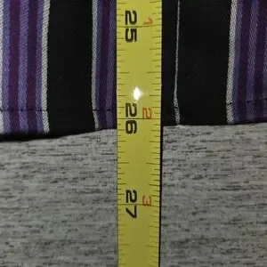 This Westbound Wrinkle-Free Pinstripe Button Shirt in woman's size 14 is a stylish and versatile blouse suitable for various occasions such as travel, casual wear, workwear, and business attire. Made from a comfortable cotton blend fabric with a knit texture, this shirt features a collared neckline, button closure, and long sleeves for a classic and fitted look. The pinstripe pattern in purple and black adds a touch of elegance to the garment, making it a perfect addition to any wardrobe for all seasons. Easy to care for with machine washable instructions, this shirt is a practical and fashionable choice for women looking for a wrinkle-resistant top.
