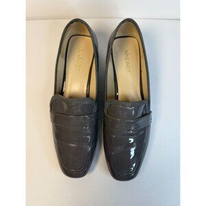 Nine West Uniformilyo Loafers Women Sz 9M Dark Grey Patent Leather Preppy Shoes
