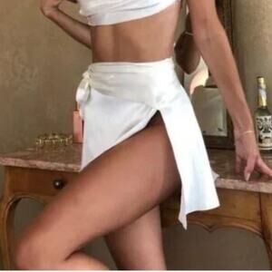 ARE YOU AM I Lilja Silk Wrap Mini Skirt Black Sz XS