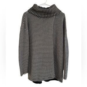Enjoy this Cabi Fergie Knit Sweater Black White Split Front & Back Chunky Turtleneck