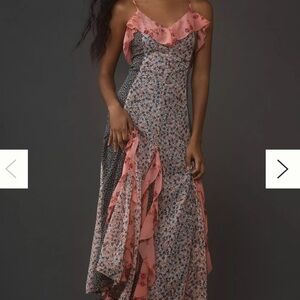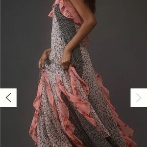 By Anthropologie, floral ruffle midi dress. Flowy chiffon style. Gorgeous for a wedding, baby shower or party