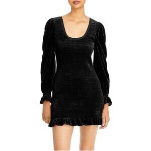 This stunning black velvet mini dress by LOVESHACKFANCY features a smocked body for a flattering fit, romantic puff sleeves with ruffled cuffs, and a feminine ruffled hemline. Perfect for date nights, holiday parties, or any elegant evening out.