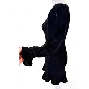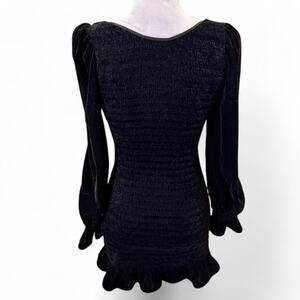 keywords: LoveShackFancy black velvet dress, smocked mini dress, puff sleeve cocktail dress, romantic holiday dress, velvet ruffle dress, LoveShackFancy petite, holiday party outfit, cottagecore evening dress, sexy dress, sexy holiday dress