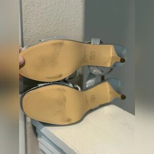 Step out in style with these elegant silver strappy heels. Perfect for any occasion, these shoes add a touch of glamour to your outfit.