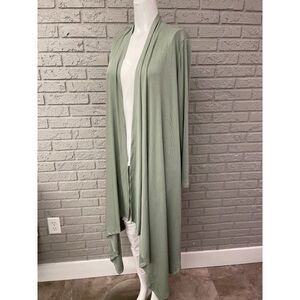 Pink Lily Green Ribbed Long Open Front Duster / Cardigan Size S