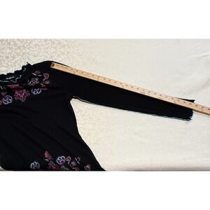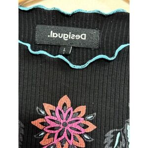 Desigual Black Ribbed Mock Neck Long Sleeve Floral Women's Top Size L Artsy