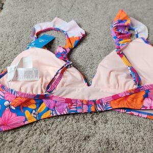 Cupshe Floral Rufled Bralette & High Waist Bikini Set L