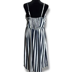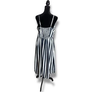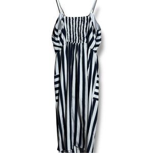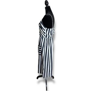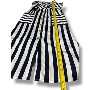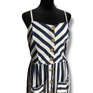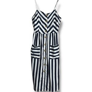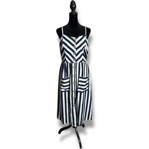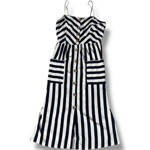 Style House Navy/White Stripe Sleeveless Button Down Front Midi Dress w/ Pockets