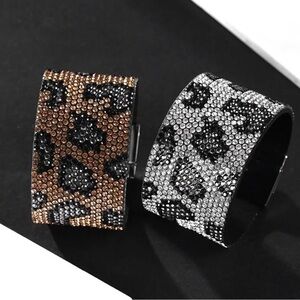⭐️Gold & Black Crystal Rhinestone in Leopard Print Design Accent The Length Of The Cuff