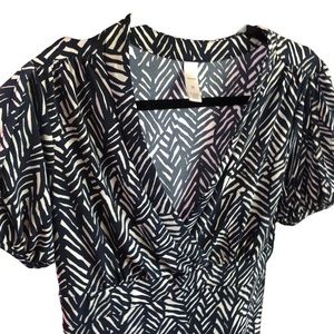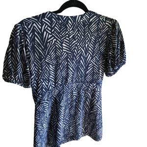 Merona Navy and White Print V-neck Blouse. Cap Sleeve. Size XS