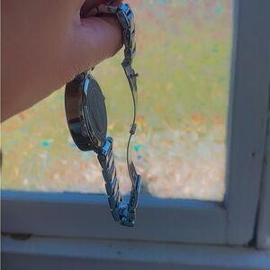Stylish Michael Kors watch in silver. Features a chronograph design with crystal details. Used little scratches as seen on the photos, but works perfect and almost brand new!