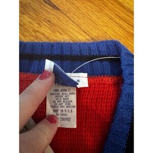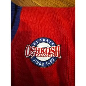 Vintage Oshkosh Red Blue Sweater Chest Patch Embroidered Sz M Boys V Neck NWT