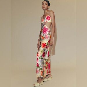 NWOT Reformation Poppies Silk Maxi Dress Cutout Floral Boho Garden Sz 4