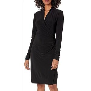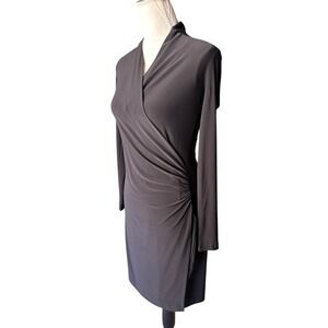 Norma Kamali Black Faux Wrap Gathered Side Drape L/S Knee Length Dress -XS