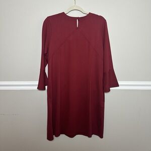 J Jill Ponte Shift Heavy Dress M NWT Bell Sleeves Stretch Cranberry Red Pockets