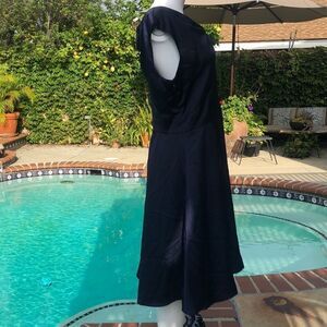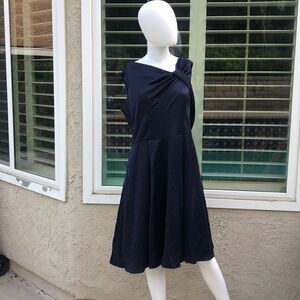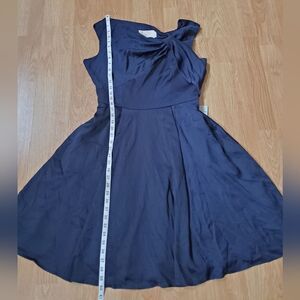 In a twist worth shouting about, this swingy satin dress features V-necklines at the front and back, knotted into alluring asymmetry.
