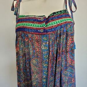 Karma Highway Paisley Print Embroidered Dress, VGUC, One Size. No flaws to note and in excellent shape. I think this could fit up to a size L based on flat lay measurements below.