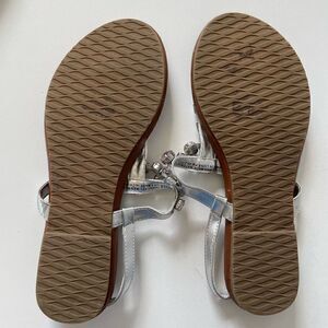 Kenneth Cole Reaction Silver Tone Bejeweled Strappy Sandals Size 6 EUC