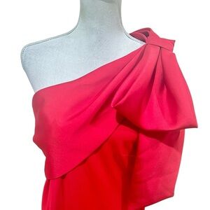 Nwt betsy & Adam Vibrant Red One-Shoulder big bow Gown made in USA size 14