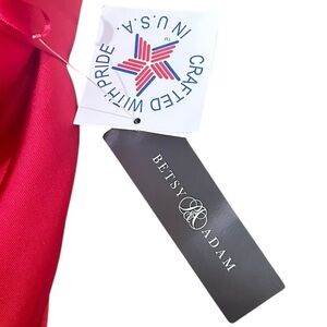New with tags Betsy & Adam one-shoulder red gown. With big bow design. Made in USA. Lined. Perfect for formal event like red dress heart events. New!