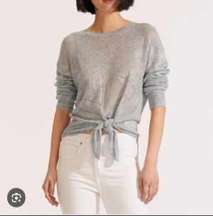 Veronica Beard Linen Elina Pointelle Sweater Tie Front
