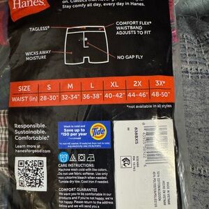 Enjoy the comfort of Hanes tagless boxers. Soft and breathable fabric. Improved waistband. Adjusts to fit. Wicking cool comfort fabric. Size M 32-34”