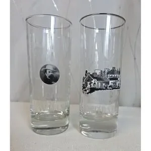 Jack Daniels 10oz Set Of 2 Highball Distillery Etched Silver Rim Painted