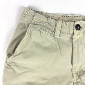 American Eagle Outfitters AEO Longer Length Mens Shorts Sz 28 Flat Front Chino Khaki Post Y2K