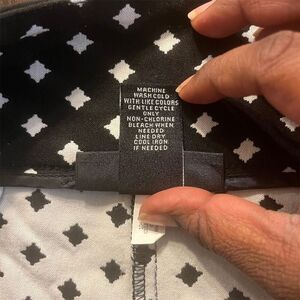 Keywords: Lane Bryant, women's pants, size 14, black dress pants, polka dot pants, casual wear, work attire, social gatherings, machine washable, rayon blend, polyester blend, nylon blend, spandex, regular fit, pre-owned