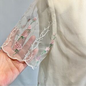 VINTAGE rose embroidered sheer midi dress short sleeve sheer delicate formal 80s